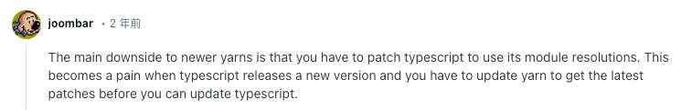 但更主要的原因是:我懶。pnpm 用著沒什麼問題,就懶得換了。